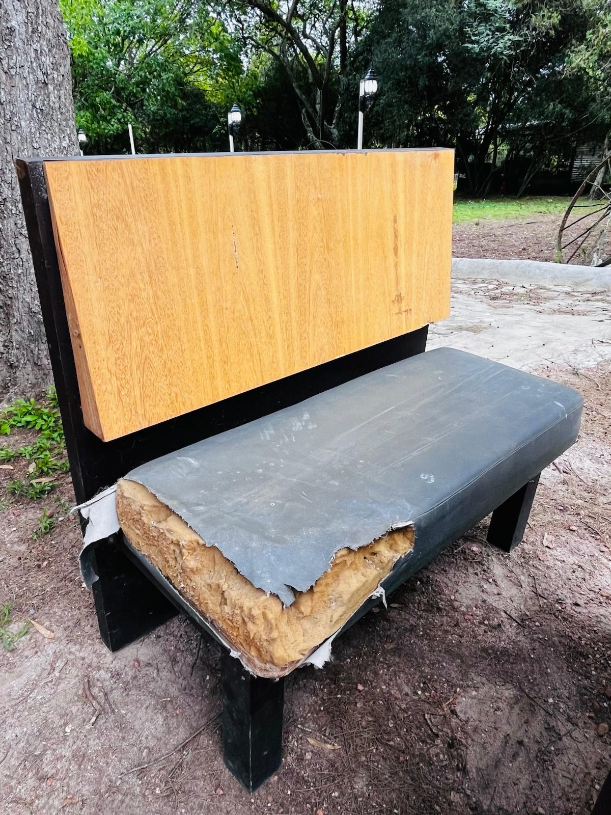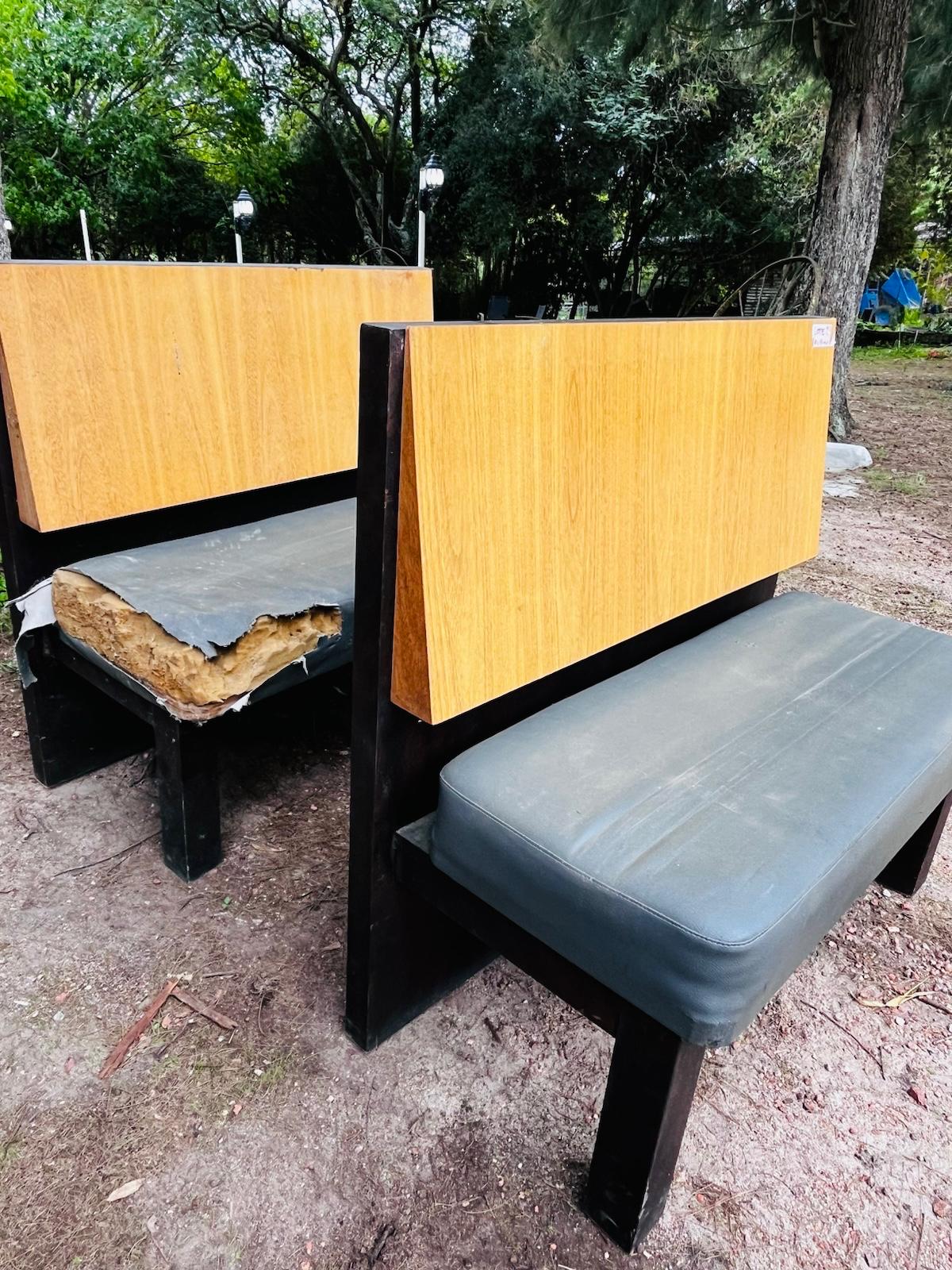 Lote x2 bancos en madera, asiento en cuerina