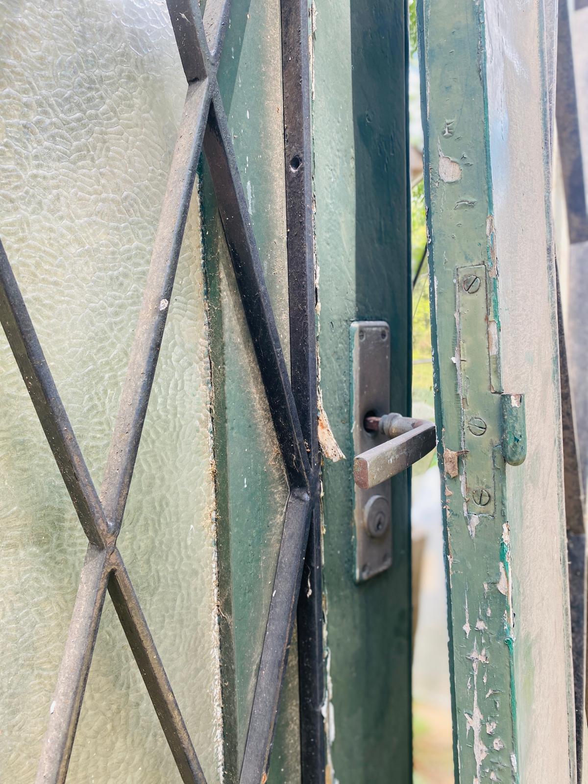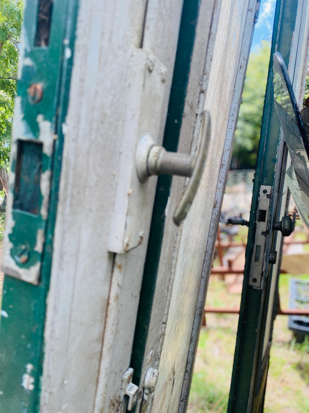 Lote x2 hojas de puerta en madera con rejas, color verde