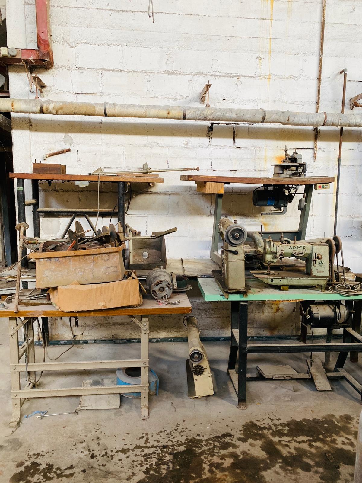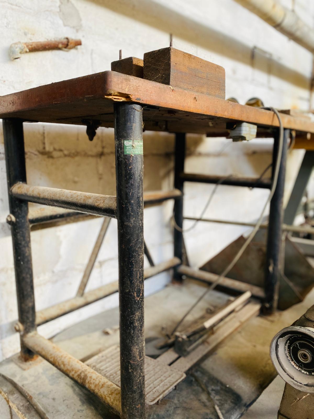 Lote x5 art: mesas de maquina de coser, mesa de madera, maquina de ribetear, saca ojales y otros (1,20×0,75×0,60m – 2,80×0,80×0,60m.)