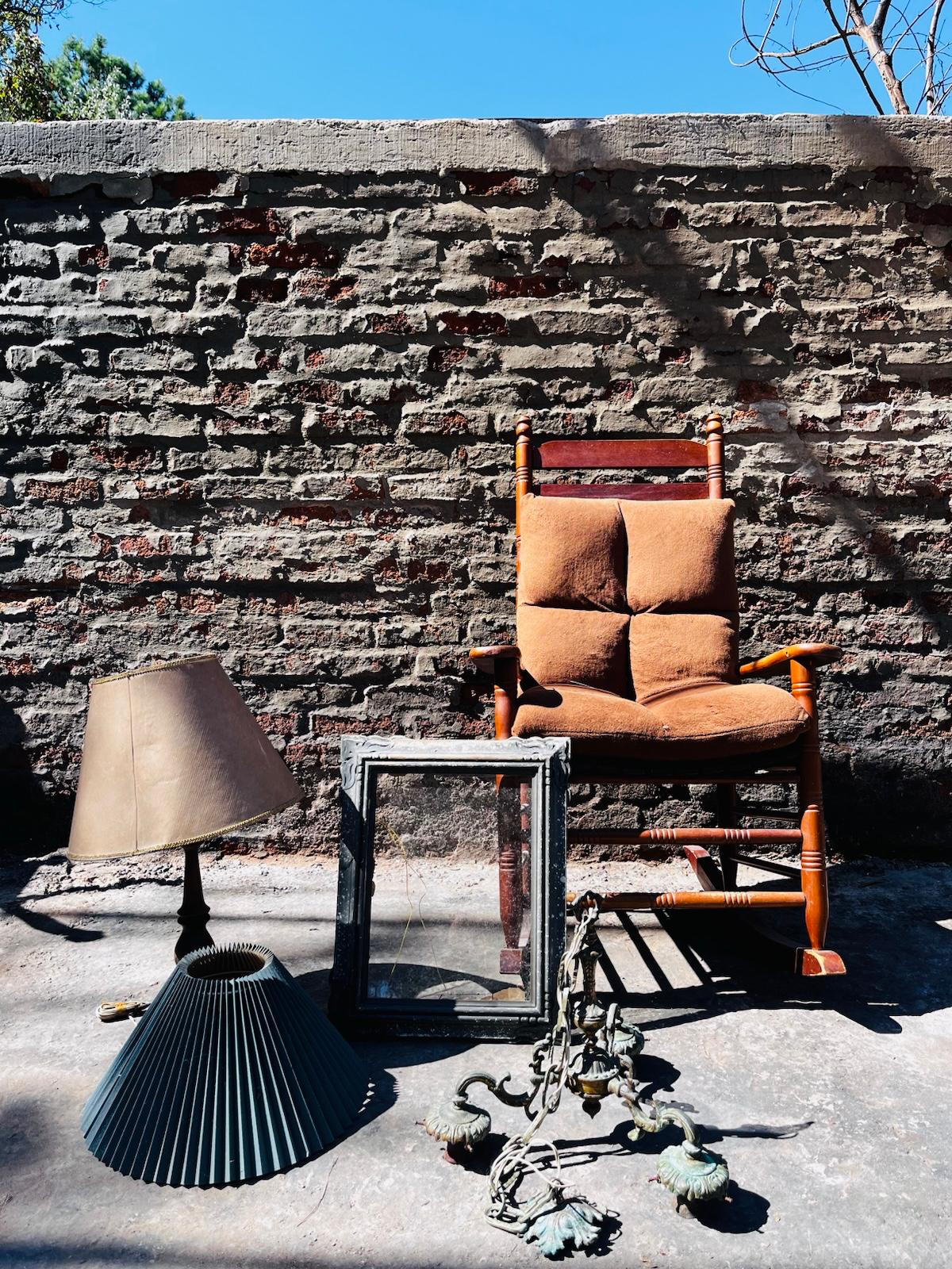 Lote x5: lámpara, silla mecedora, portátil, cuadro y araña de techo
