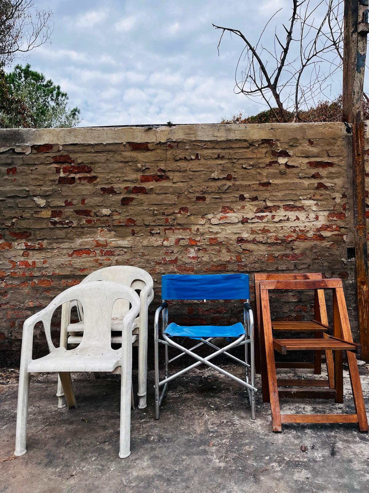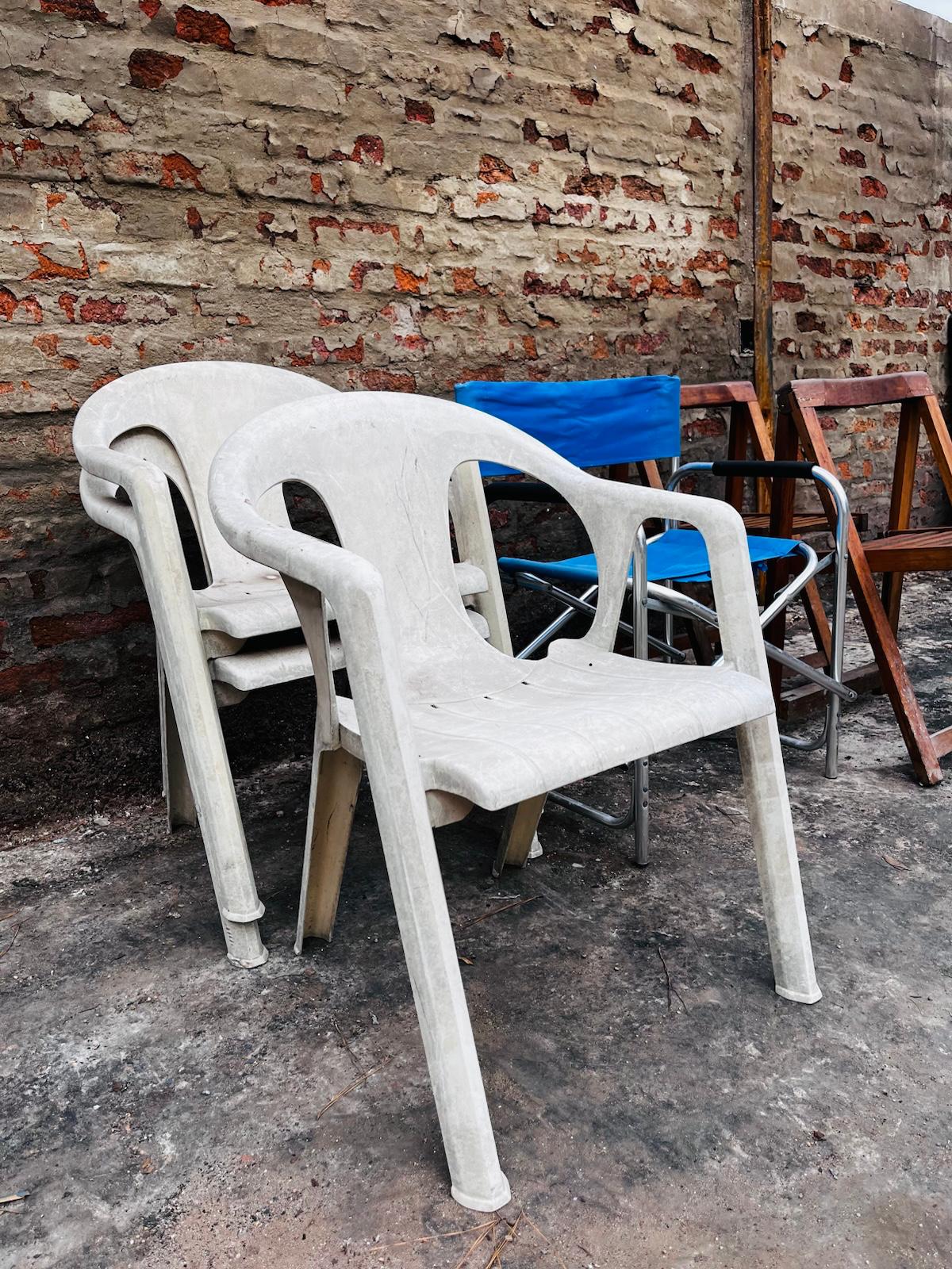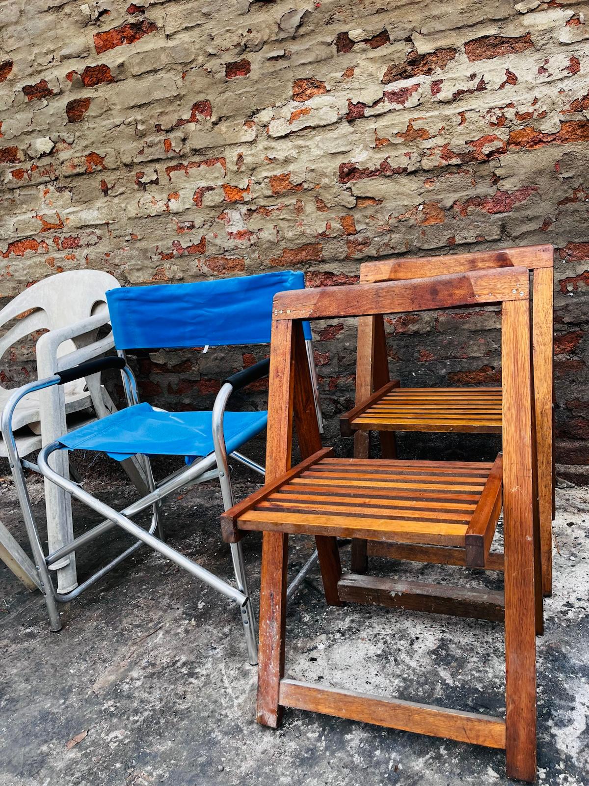 Lote x5 sillas diferentes: de PVC, madera y plegable
