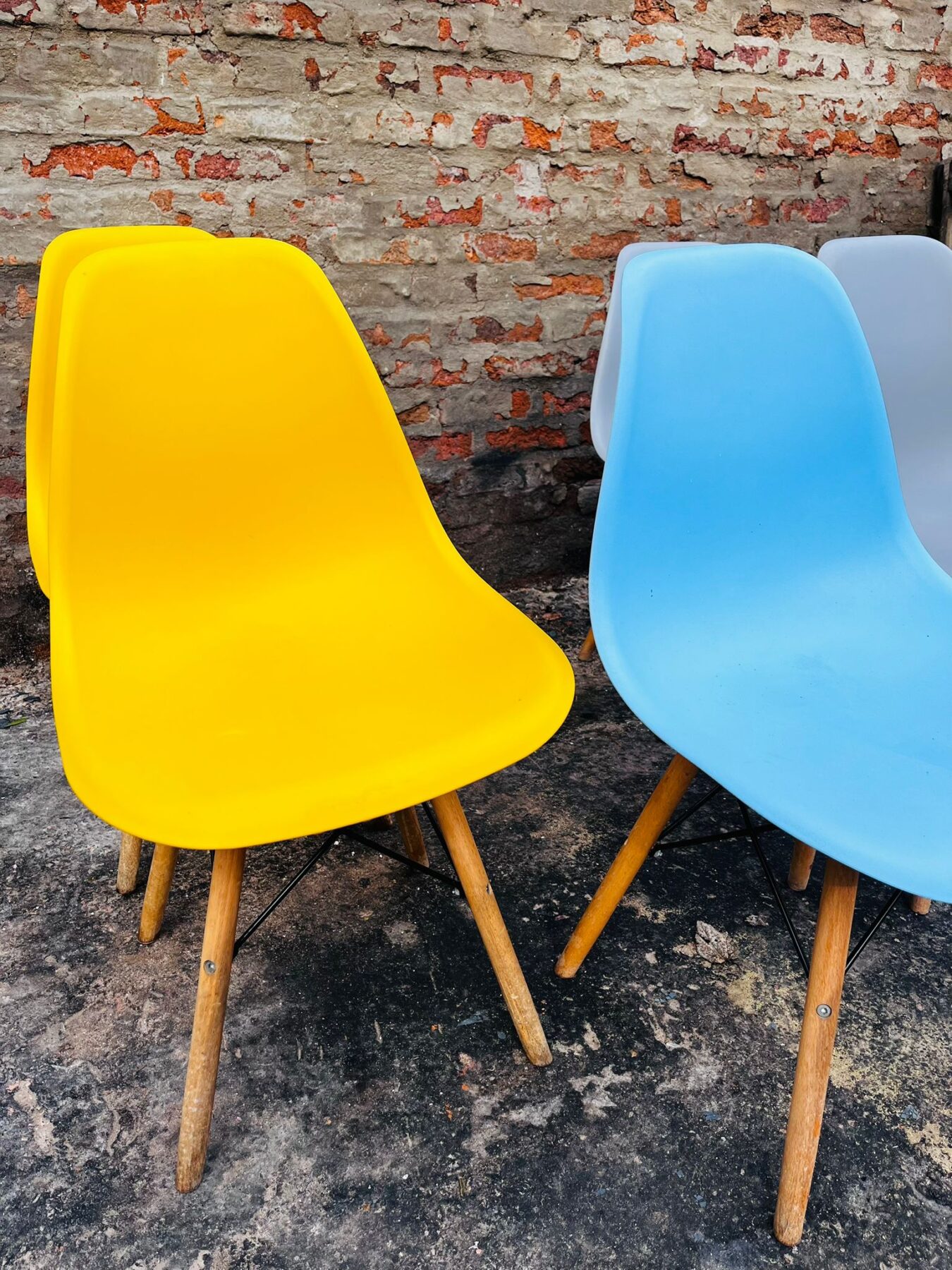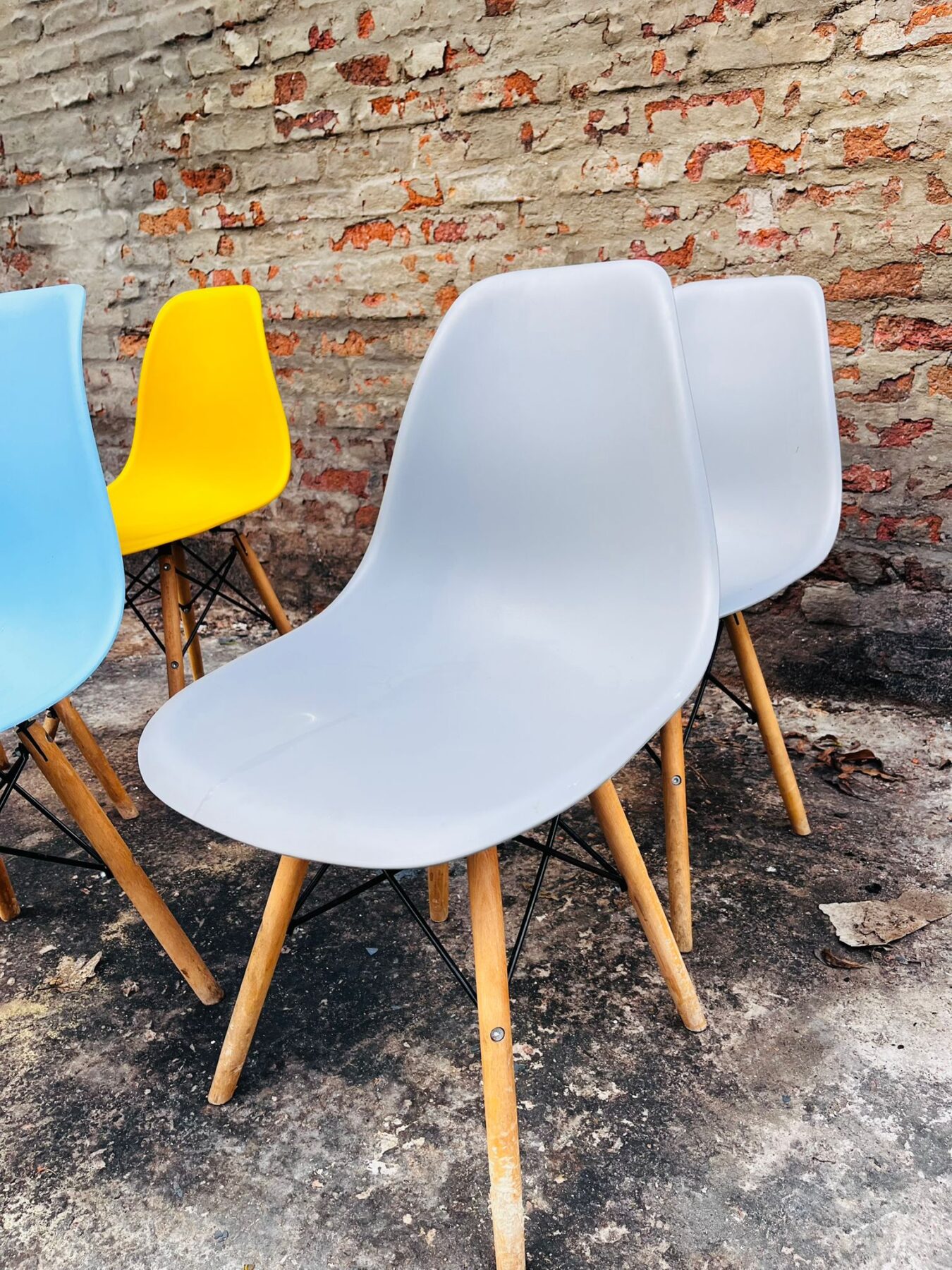 Lote x5 sillas en PVC: gris, amarillo y celeste