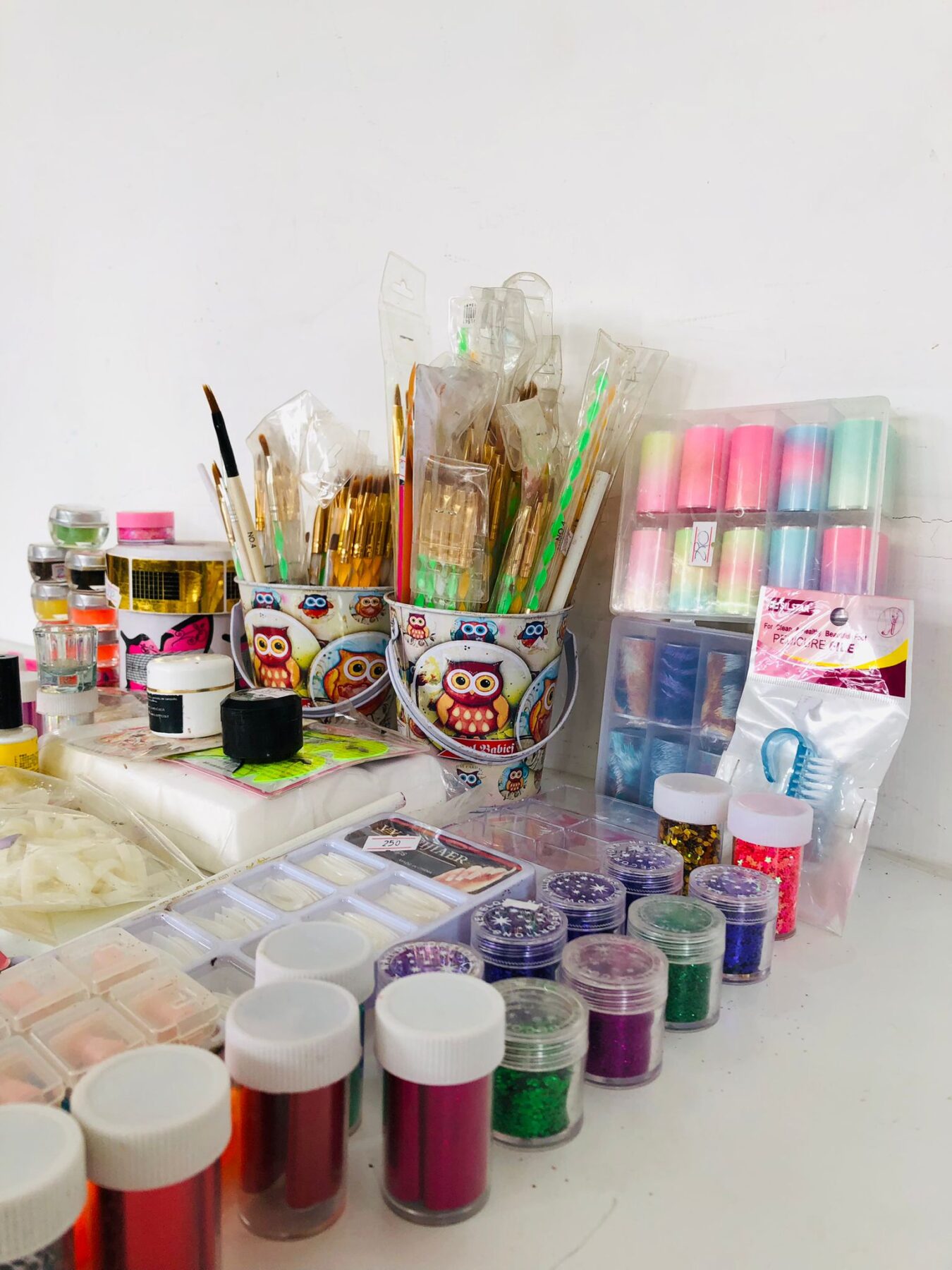 Lote x95 artículos para uñas: pinceles, tips, limpiadores, y otros